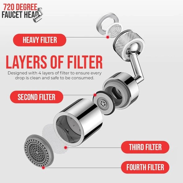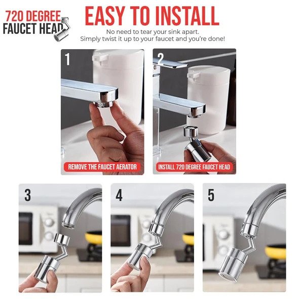 - חבילה כוללת 1x ראש ברז 720 מעלות