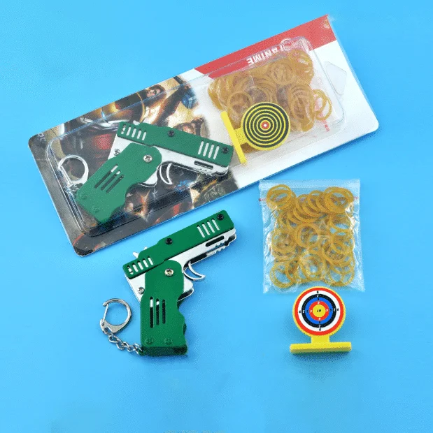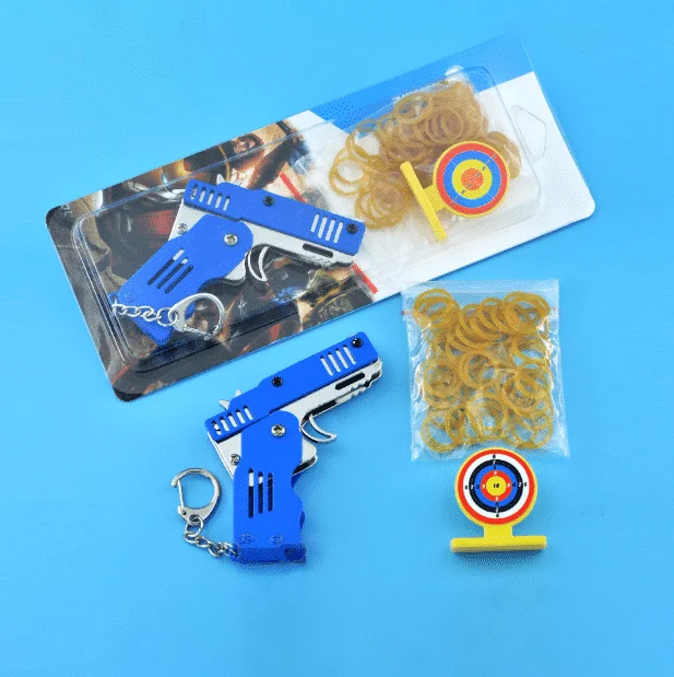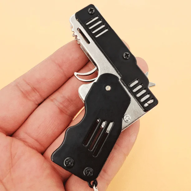 כל מתכת מיני מתקפל אקדח אקדח גומיה מחזיק מפתחות יש את תכונות המוצר הבאות: