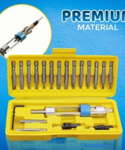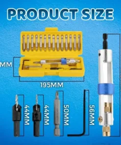 - החבילה כוללת: 1 x מתקן מקדחה חצי זמן , 8 x פיליפס ביטים (2 כל אחד: PH0,PH1,PH2,PH3), 8 x חלקים שטוחים (2 כל אחד: 1/8 אינץ’ 3.2 מ”מ, 5/32 אינץ’ 4 מ”מ, 3/16 אינץ’, 4.8 מ”מ, 3 מ”מ, 3 מ”מ, 4.8 מ”מ ספירות. סיביות (3/32 אינץ’ 2.4 מ”מ, 1/8 אינץ’ 3.2 מ”מ), 1 x מפתח ברגים אלן , 1 x מארז (7.6 x 3 אינץ’ / 19.4 x 7.4 ס”מ)