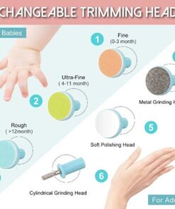 - החבילה כוללת: 1x גוזם ציפורניים חשמלי לתינוק , 6x ראש תיוק ניתן להחלפה, 1x מארז אחסון