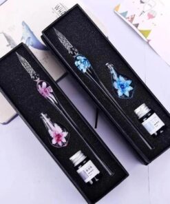 סט עטי קליגרפיה מזכוכית עם משענת דיו ועט