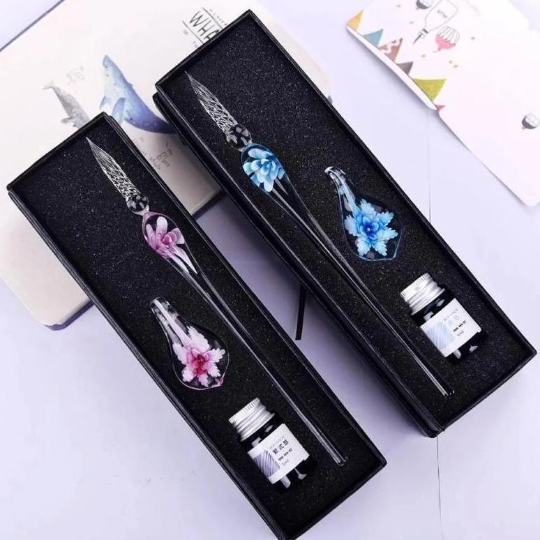1*סט עטי קליגרפיה מזכוכית עם משענת דיו ועט