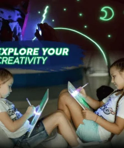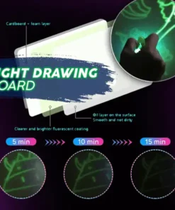- הפעל את עטי ה-LED הזוהרים הכלולים, והתחל לצייר או לכתוב על משטח הלוח.