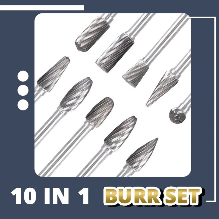 סט 1 של רוטרי קרביד לליטוש מתכת (10 יחידות)