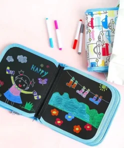 פנקס ציור נייד מחיק לשרבט (12 עטים כלולים)